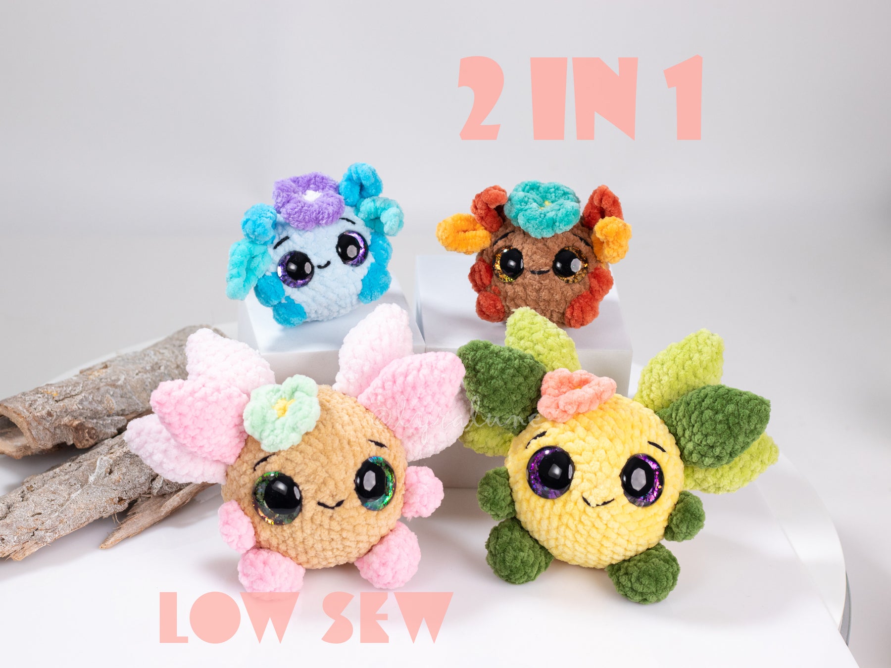 This is a low sew amigurumi crochet pattern for a pair of forest spirits, written in English with US crochet terms.